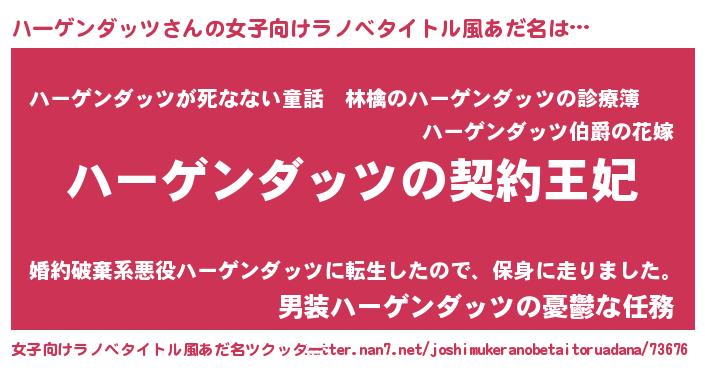 | 男性向けラノベタイトル風あだ名 | 『ハーゲンダッツという概念が存在しない退屈な世界 』 |