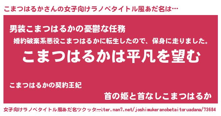 | 胡散臭い通販商品みたいなあだ名 | 『信頼と実績のネックレス…その名も「こまつはるか」』 |
