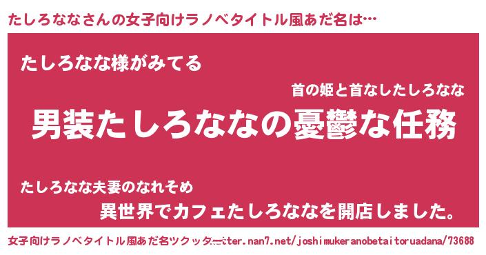 | 胡散臭い通販商品みたいなあだ名 | 『全米が絶賛したサプリメント…その名も「たしろなな」』 |