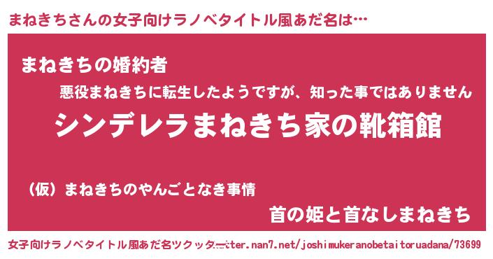 | 男性向けラノベタイトル風あだ名 | 『緋弾のマネキチ』『まねきちの憂鬱』 |