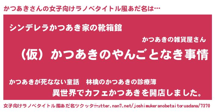 | 男性向けラノベタイトル風あだ名 | 『かつあきの憂鬱』『緋弾のカツアキ』 |