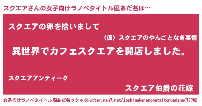 | 男性向けラノベタイトル風あだ名 | 『誰もが恐れるあのスクエアが、ぼくの専属メイドになるようです。』 |