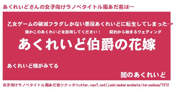 | 男性向けラノベタイトル風あだ名 | 『やはりあくれいどの青春ラブコメはまちがっている 』 |