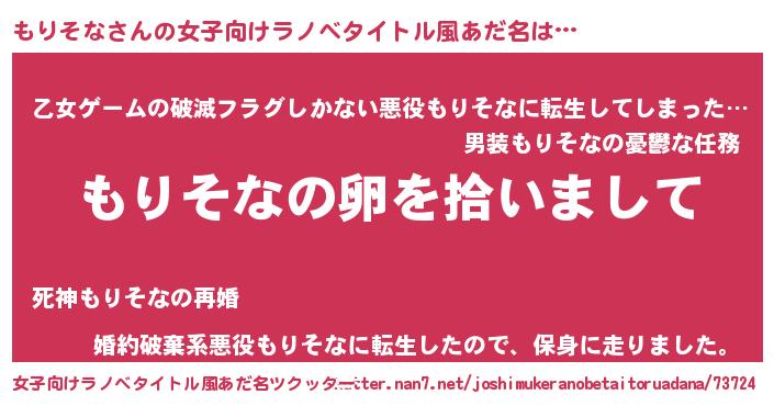 | 男性向けラノベタイトル風あだ名 | 『もりそなの嫁は女の子じゃないと思った?』 |