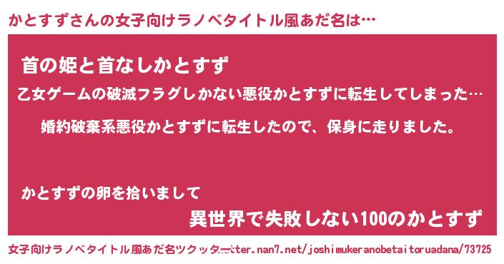 | 胡散臭い通販商品みたいなあだ名 | 『絶対に幸福をもたらす健康食品…その名も「かとすず」』 |