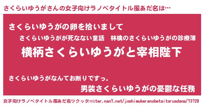 | 意味不明あだ名 | 『とにかく怪しいさくらいゆうが』 |