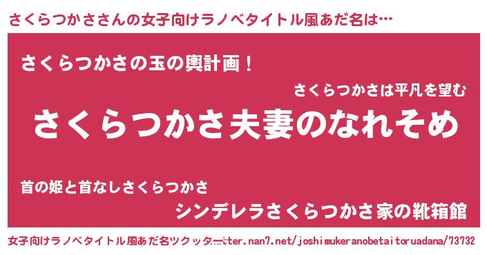 | 男性向けラノベタイトル風あだ名 | 『おまえをオタクにしてやるから、俺をさくらつかさにしてくれ! 』 |