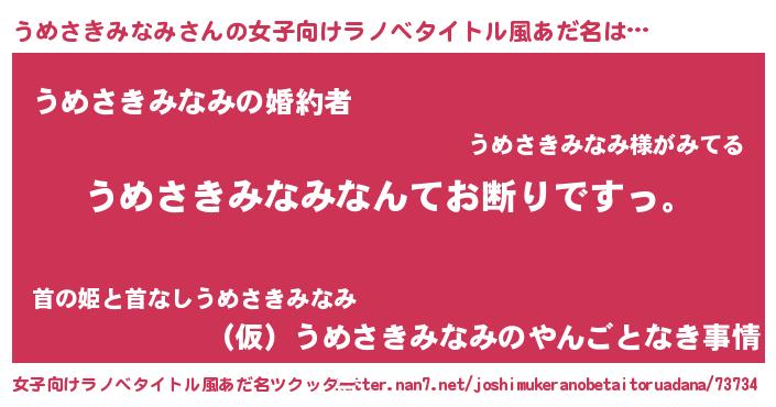| 恥ずかしいあだ名 | 『ウメサキミナミデラックス』『うめちん』 |