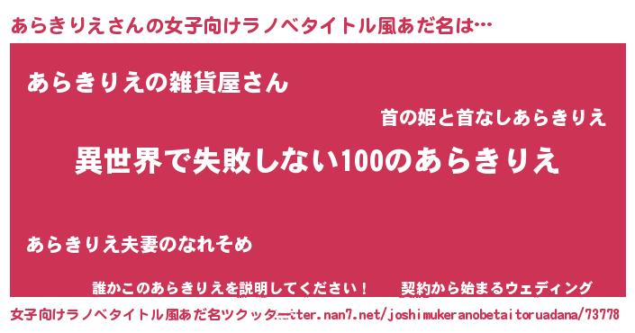 | 男性向けラノベタイトル風あだ名 | 『あらきりえという概念が存在しない退屈な世界 』 |