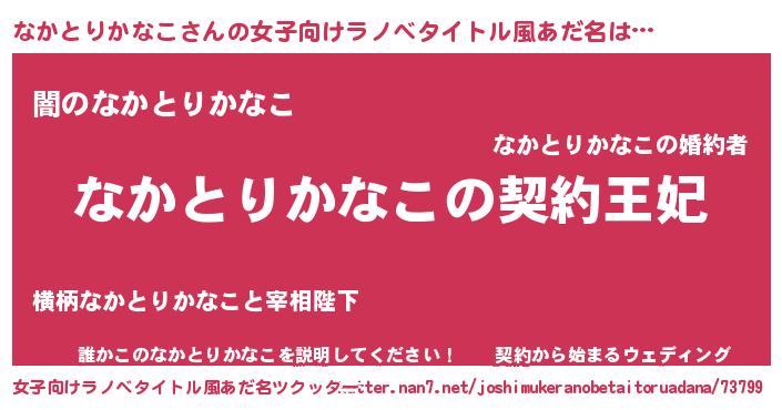 | 男性向けラノベタイトル風あだ名 | 『誰もが恐れるあのなかとりかなこが、ぼくの専属メイドになるようです。』 |