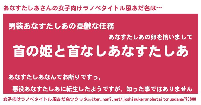 | 男性向けラノベタイトル風あだ名 | 『はたらくあなすたしあさま!』 |