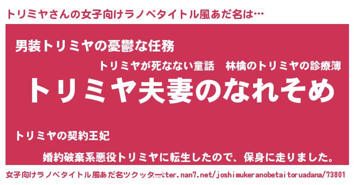 | 料理風あだ名 | 『トリミヤのトマト煮』『トリミヤごはん』 |