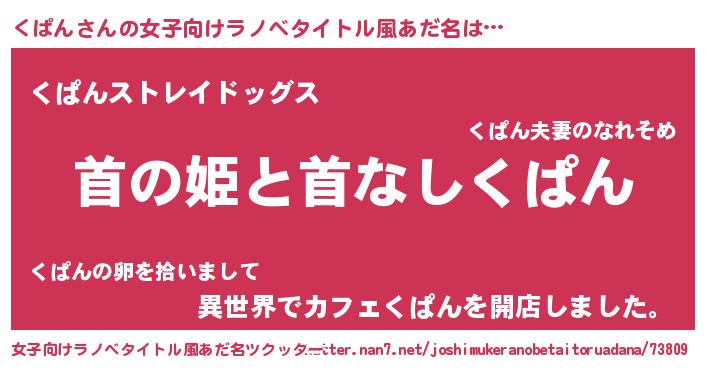 | 意味不明あだ名 | 『自称くぱん』『永久保存くぱん』 |