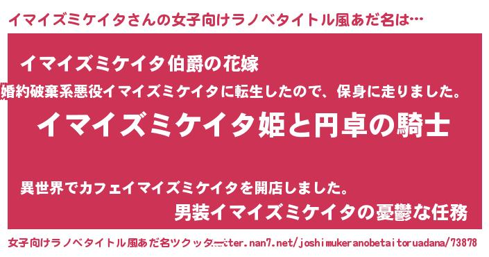 | 男性向けラノベタイトル風あだ名 | 『イマイズミケイタの憂鬱』 |