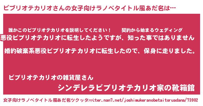 | 男性向けラノベタイトル風あだ名 | 『転生したらビブリオテカリオだった件』 |