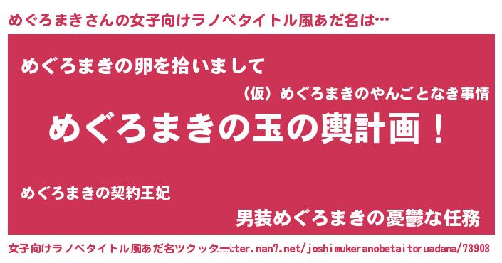 | 萌えアニメ | 主人公(めぐろまき)のあだ名『 めぐめぐきゅん』 |