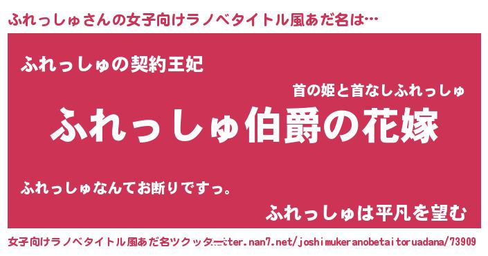 | 男性向けラノベタイトル風あだ名 | 『やはりふれっしゅの青春ラブコメはまちがっている 』 |