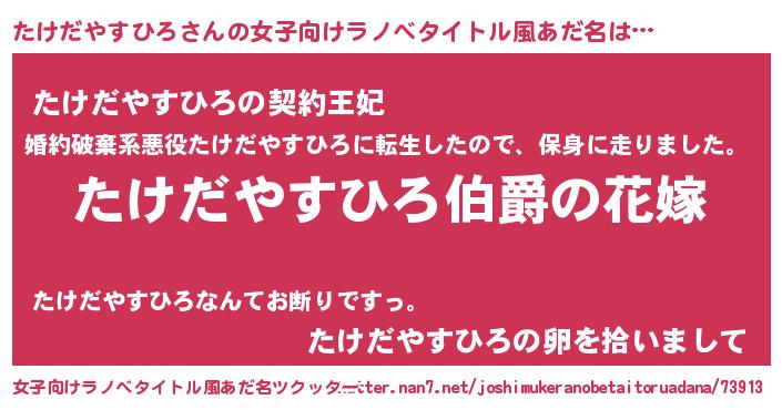 | ファンタジー風あだ名 | 『エターナルタケダヤスヒロー』 |
