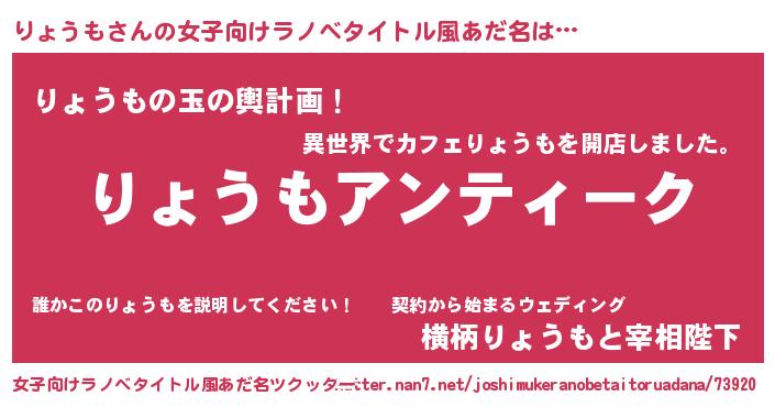 | 男性向けラノベタイトル風あだ名 | 『魔法科高校のりょうも』 |