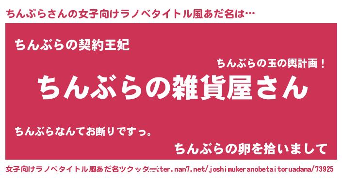 | 男性向けラノベタイトル風あだ名 | 『やはりちんぶらの青春ラブコメはまちがっている 』 |