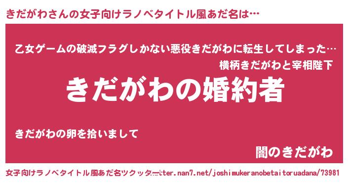 | 男性向けラノベタイトル風あだ名 | 『うちの娘の為ならば、俺はもしかしたらきだがわも倒せるかもしれない。』 |
