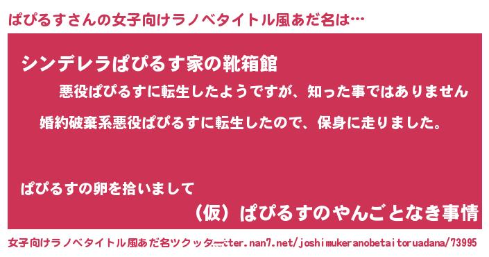 | 胡散臭い通販商品みたいなあだ名 | 『必ず成功するブレスレット…その名も「ぱぴるす」』 |