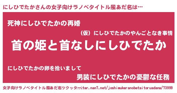 | 男性向けラノベタイトル風あだ名 | 『はたらくにしひでたかさま!』 |