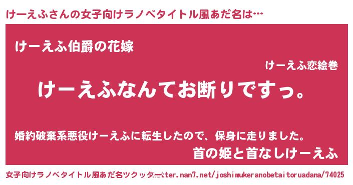 | 男性向けラノベタイトル風あだ名 | 『魔法科高校のけーえふ』 |
