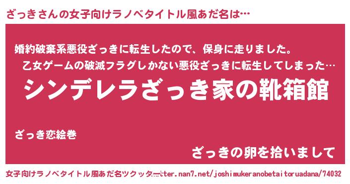 | 胡散臭い通販商品みたいなあだ名 | 『信頼と実績のサプリメント…その名も「ざっき」』 |