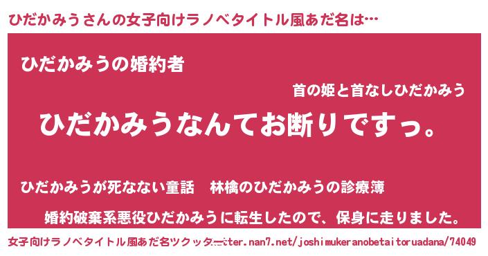 | 意味不明あだ名 | 『自称ひだかみう』 |