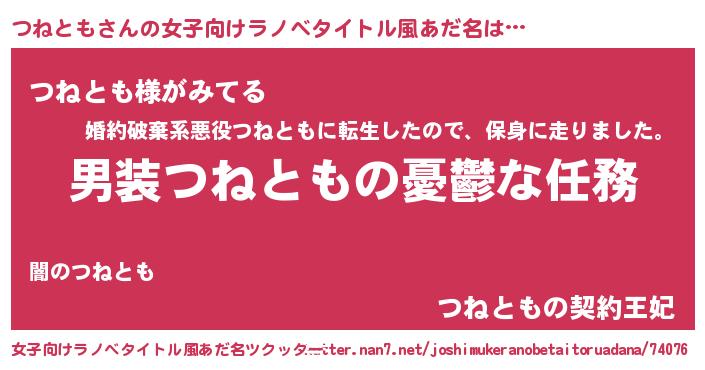 | 男性向けラノベタイトル風あだ名 | 『うちのつねともが世界を掌握している!』 |
