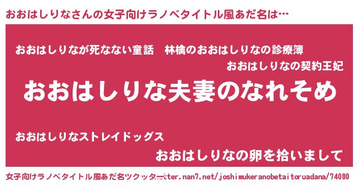 | 男性向けラノベタイトル風あだ名 | 『おまえをオタクにしてやるから、俺をおおはしりなにしてくれ! 』 |