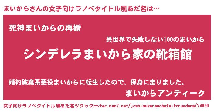 | ヘコむあだ名 | 『まいから(笑)』『まいにー』『牛乳』 |