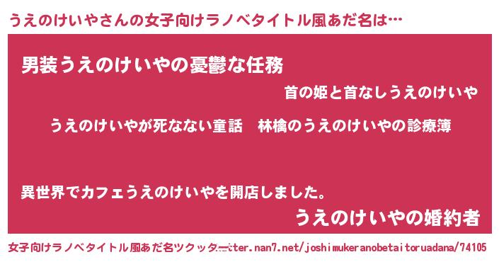 | 男性向けラノベタイトル風あだ名 | 『魔弾の王とうえのけいや』 |