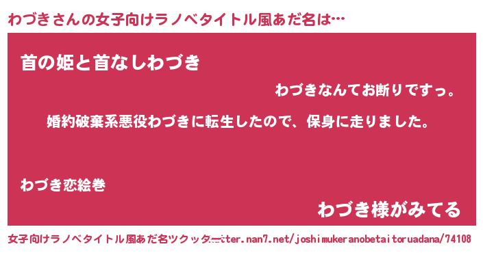 | ヒーロー風カッコイイあだ名 | 『暗黒騎士ワヅ』『超時空戦士ワヅキ』 |