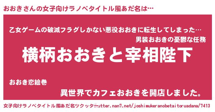 | 意味不明あだ名 | 『住所不定無職おおき(62歳)』 |