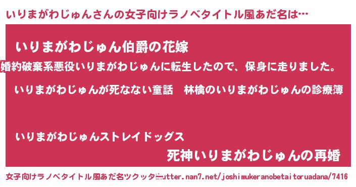 | 男性向けラノベタイトル風あだ名 | 『魔弾の王といりまがわじゅん』 |