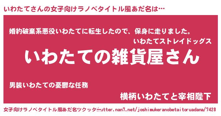 | 男性向けラノベタイトル風あだ名 | 『やはりいわたての青春ラブコメはまちがっている 』 |