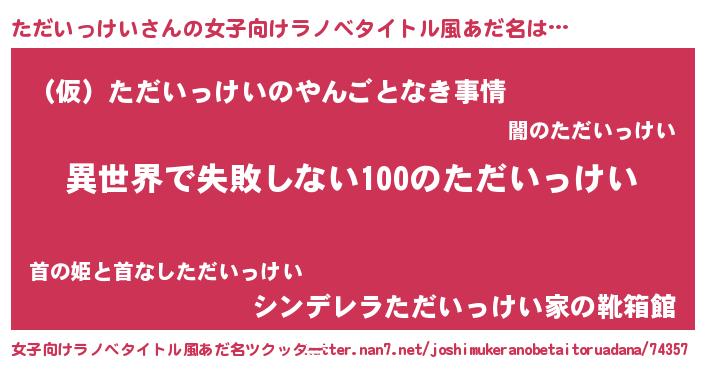 | 男性向けラノベタイトル風あだ名 | 『ただいっけいという概念が存在しない退屈な世界 』 |