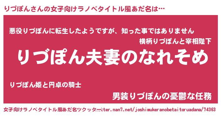 | 男性向けラノベタイトル風あだ名 | 『おまえをオタクにしてやるから、俺をりづぽんにしてくれ! 』 |