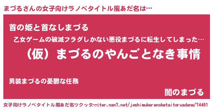 | 男性向けラノベタイトル風あだ名 | 『まづるの憂鬱』『はたらくまづるさま!』 |