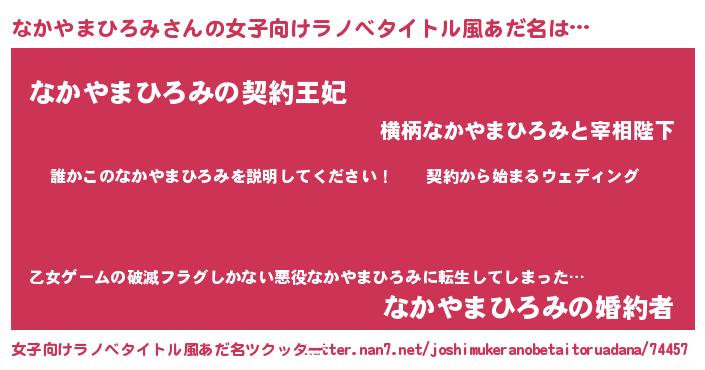 | 男性向けラノベタイトル風あだ名 | 『ナカヤマヒロミアートオンライン』 |