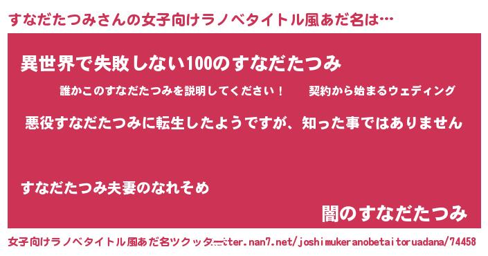 | 男性向けラノベタイトル風あだ名 | 『この素晴らしい世界にすなだたつみを!』 |