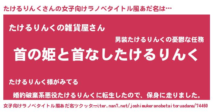 | 男性向けラノベタイトル風あだ名 | 『はたらくたけるりんくさま!』 |