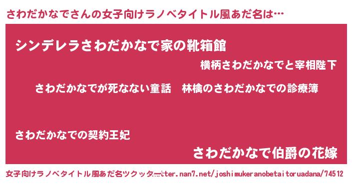 | 意味不明あだ名 | 『住所不定無職さわだかなで(3歳)』 |