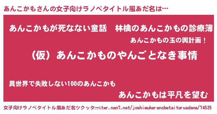 | 男性向けラノベタイトル風あだ名 | 『あんこかもの憂鬱』 |