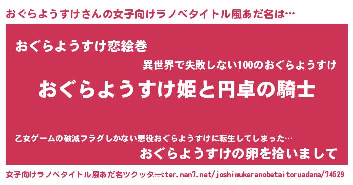 | 男性向けラノベタイトル風あだ名 | 『オグラヨウスケアートオンライン』 |