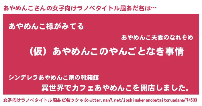 | 男性向けラノベタイトル風あだ名 | 『あやめんこの憂鬱』 |