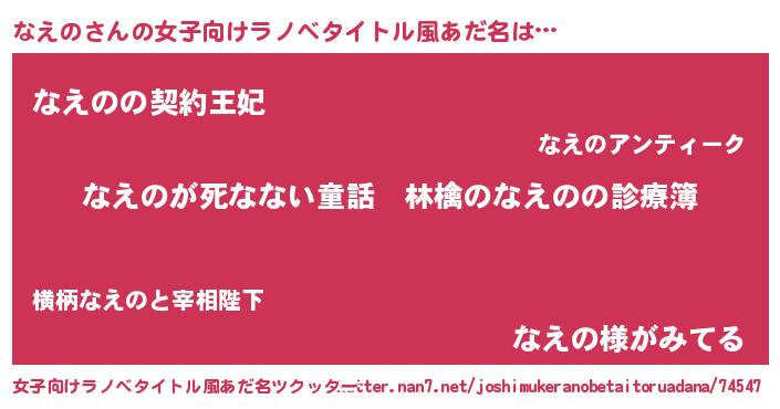 | 意味不明あだ名 | 『住所不定無職なえの(2歳)』『自称なえの』 |