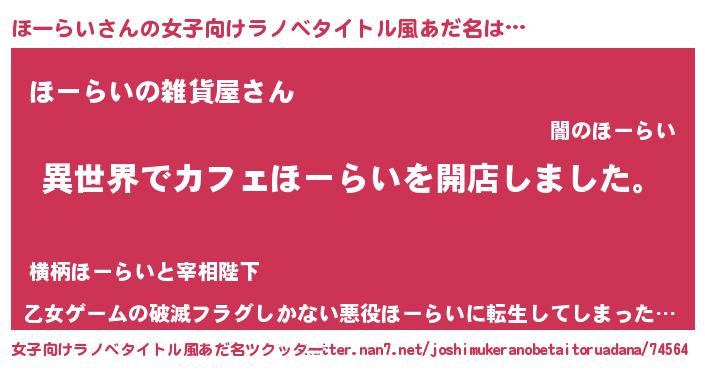 | ヒーロー風カッコイイあだ名 | 『ネオホーライ』『ウルトラほーらいマン』 |